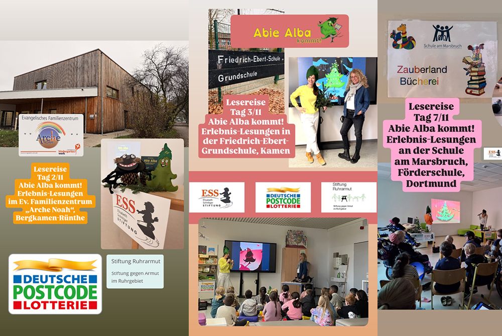 info@abiealba.deMit 104 Erlebnis-Lesungen und 3 Ferien-Projektwochen konnten wir mit KaMa mittendrin und der gemeinnützigen Abie Alba gGmbH 4.081 Kinder und Jugendliche erreichen. Die bilinguale Sonderausgabe in Deutsch/Deutsche Gebärdensprache "Abie Alba - Der Junge Ottokar" wurde am 15. November 2025 mit Hilfe des Inklusionsschecks NRW veröffentlicht.