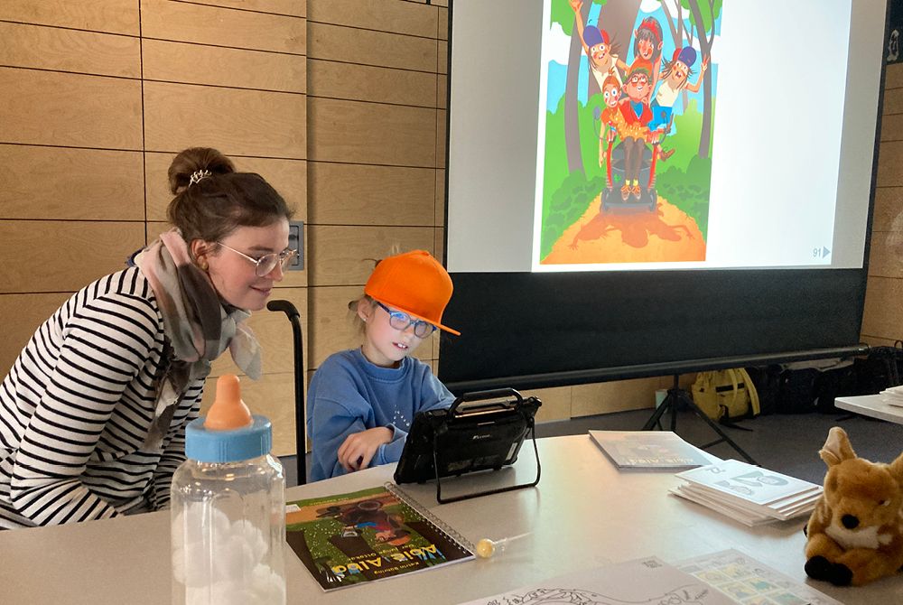 Doch die Hauptakteur:innen waren 9 Kinder der Einrichtung, die nach Anleitung und Probe am Vormittag die Moderation übernahmen, den Bastelworkshop anleiteten und Abie Alba Band 5 in verteilen Rollen – bei Kaffee und Kuchen für zahlreiche Gäste – vorlasen. Ihr ward großartig!